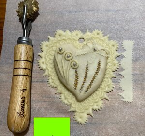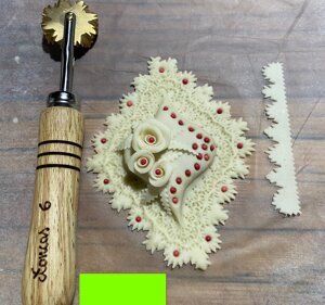 Questi attrezzi tradizionali sardi, sono particolarmente indicati per il taglio e la decorazione della pasta fresca, Sono formati da una rotella in ottone massiccio, una forcella in acciaio inox e da un manico in faggio tornito e protetto con olio di lino.